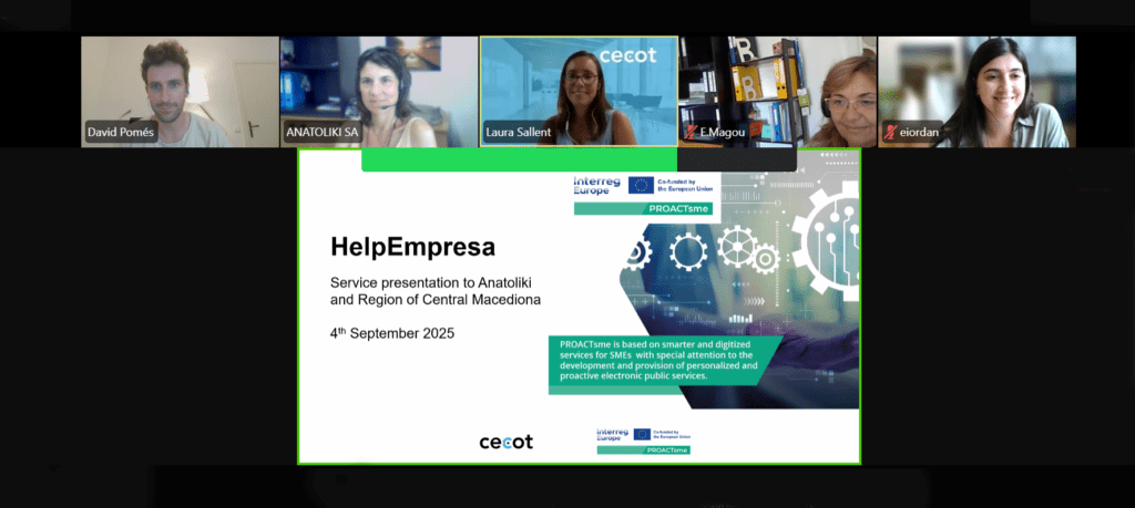 La patronal Cecot ha presentat el servei HelpEmpresa als responsables de la Regió de Macedònia Central i a l’agència de desenvolupament grega Anatoliki, en el marc del projecte europeu PROACTsme. La trobada ha servit per compartir bones pràctiques i explorar la possible aplicació del model català a Grècia.