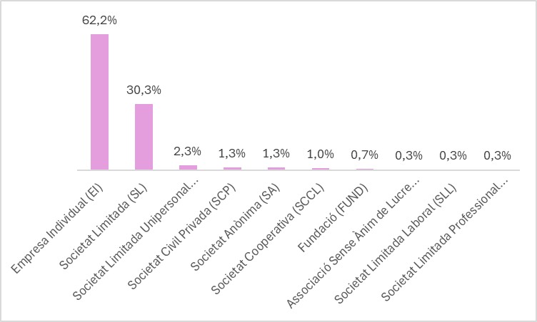 Observem que les dones autònomes en el servei representen el 62,2% de la totalitat de dones empresàries del servei. Així mateix, les dones representen un 47% de la totalitat d’autònoms que gaudeixen de les activitats i assessoraments de HelpEmpresa, seguides de les societats limitades amb un 40,08%. Aquesta tendència reflecteix un augment de la participació femenina en els últims quatre anys, acostant-se gairebé a la paritat.
