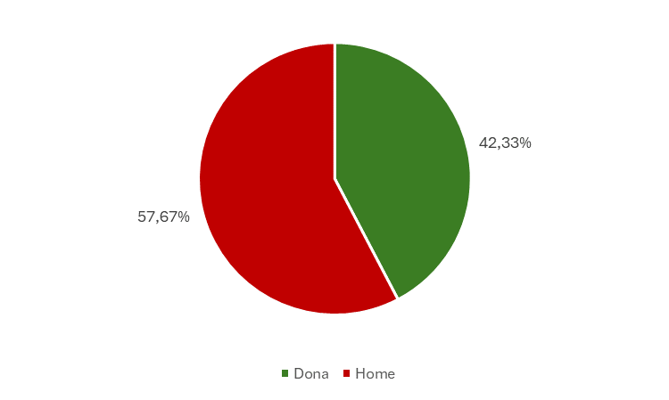 Com podem veure en la gràfica, les dones representen un 42,33% del total de persones participants en el servei, envers al 57,67% d’homes. Al llarg dels anys aquesta estadística s’ha anat modificant, i hi ha més paritat en la presencia de persones emprenedores i empresàries.